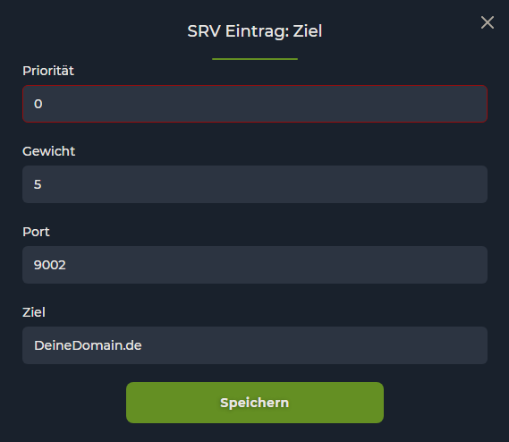 • Ziel -> Deine Domain | Solltest Du unter "Name" eben etwas angegeben haben, so muss dies mit einem "." davor
