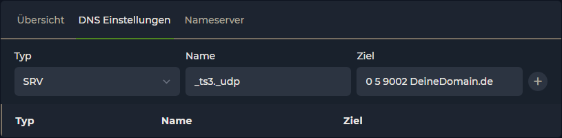 Hostest Du deinen TeamSpeak Server selbst oder bei einem anderen Hosting, so musst Du folgende Einträge erstellen.