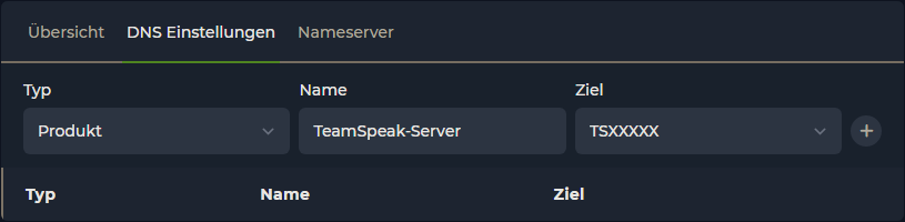 Sollte der TeamSpeak auf dem gleichen Account wie die Domain sein, so kannst Du unter "Typ" PRODUKT auswählen, der Weiterleitung einen Namen geben und unter "Ziel" den passenden TeamSpeak Server wählen.